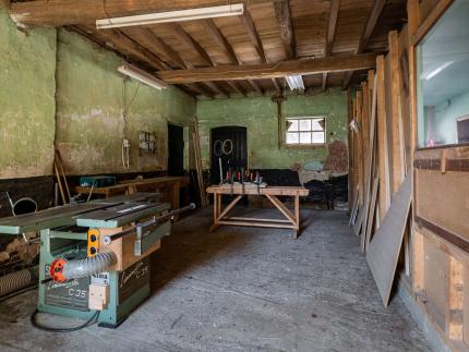 Achteraan op het perceel staan twee vrijstaande schuren, een schuur van 350m² en een schuur van 250m², dewelke tal van mogelijkheden bieden. Ideaal voor zelfstandigen, paardenliefhebbers, hobbyisten, autoverzamelaars, … .