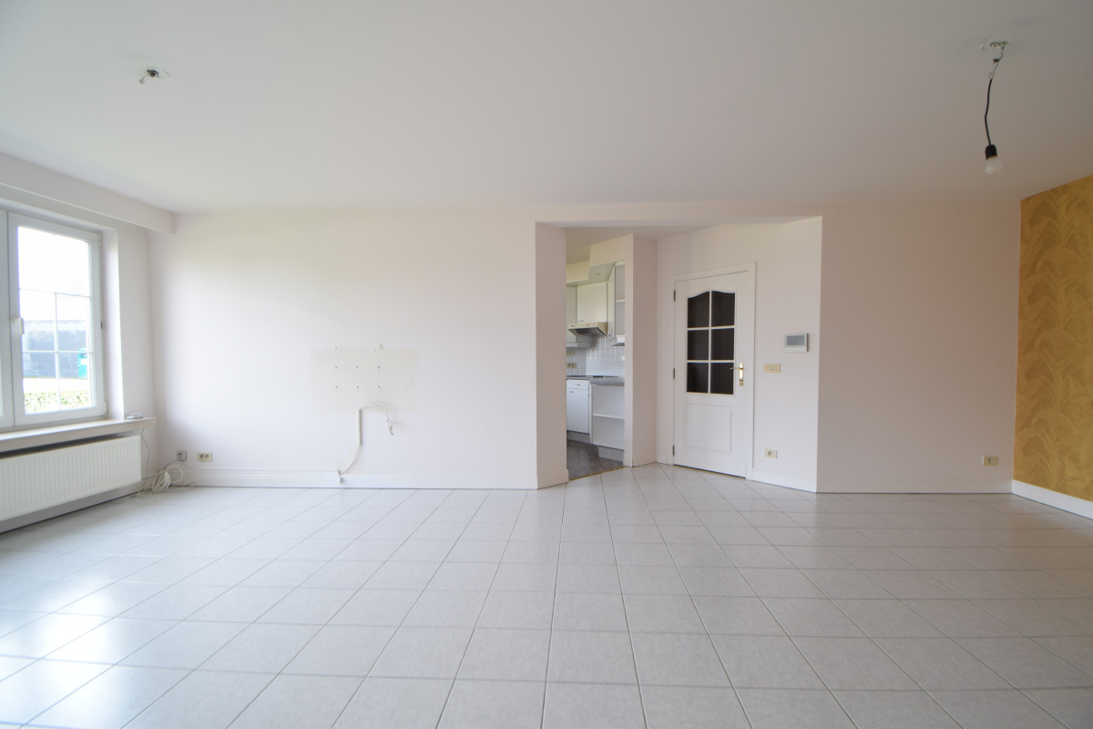 Ruim GELIJKVLOERS appartement met 2 slaapkamers in Residentie “Laagland” + berging en garage.Het gelijkvloers appartement bestaat uit een inkomhal die uitgeeft op een ruime leefruimte met veel lichtinval bestaande uit een zit- en eethoek en aanpalend een ingerichte keuken met pompsteen, dampkap, elektrisch fornuis, oven, inbouwijskast, voldoende kastruimte en plaats voor een inbouwvaatwasser.