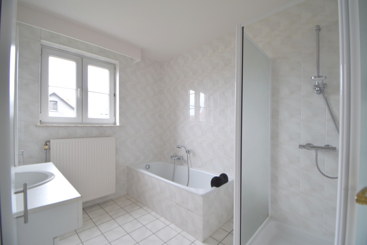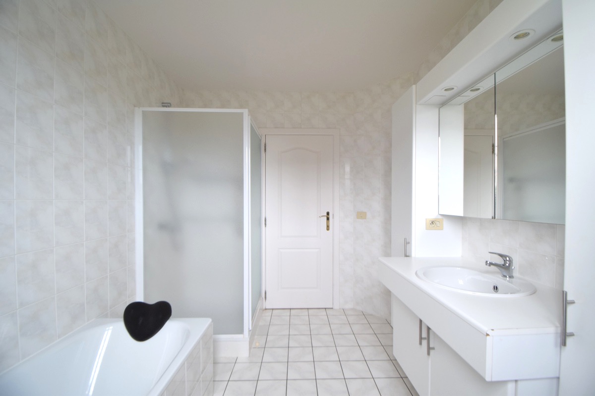 De nachthal met apart toilet geeft achteraan uit op 2 grote slaapkamers met veel lichtinval, een berging waar de cv-ketel op aardgas is geplaatst en een volledig ingerichte badkamer met douche, ligbad en dubbel lavabomeubel.
