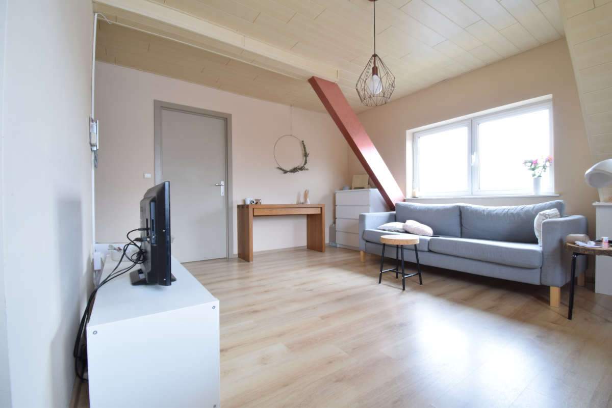 Knusse studio / dakappartement op de tweede verdieping met één slaapkamers en autostaanplaats, gelegen in het centrum van Tielen.GEEN gemeenschappelijke kosten.
