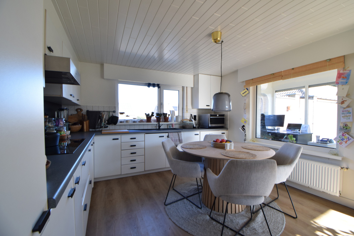 Verzorgde laagbouwwoning met 3 slaapkamer, tuin en grote garage.De woning bestaat uit een zomerkamer met zicht op de tuin die uitgeeft op de keuken met ontbijthoek, aanpalend is er een ruime leefruimte met knusse zithoek en mogelijkheid om een kachel te plaatsen. Verder is er een nachthal met apart toilet die uitgeeft op een badkamer met lavabomeubel en ligbad met douchescherm.
