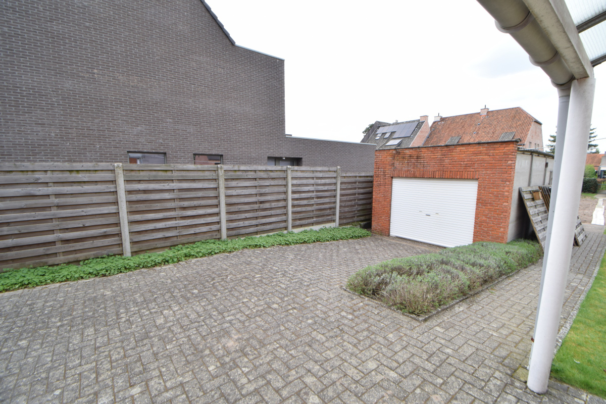 De kleine tuin is afgesloten langs achteren en in de tuin staat een garage, vooraan de woning zijn 2 parkeerplaatsen voorzien.