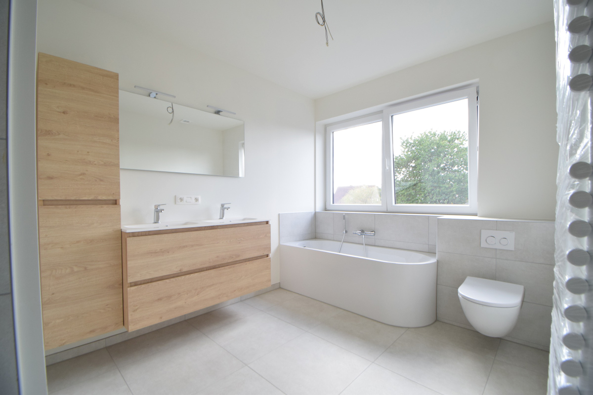 | Badkamer 1 | 8,99 m˛ | Badkamer met dubbel lavabomeubel, ligbad, toilet en grote inloopdouche. |
