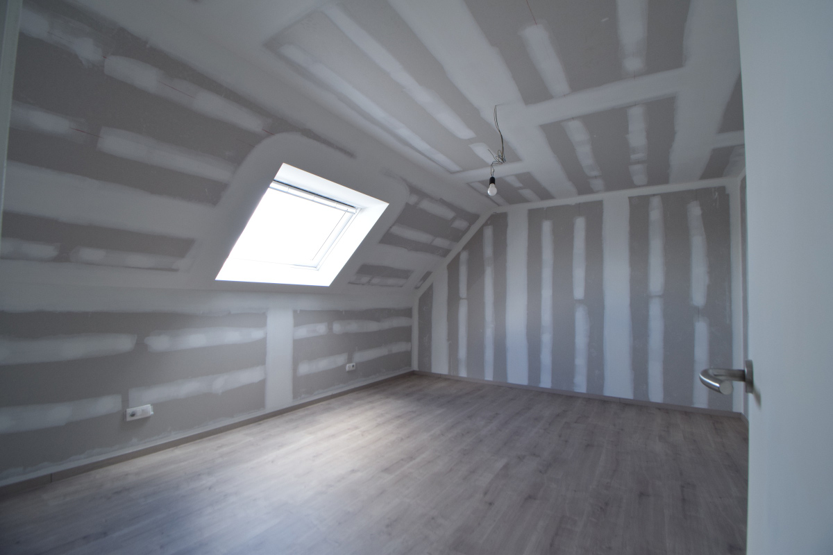 Onder dak is er een grote slaapkamer en een bergruimte.
