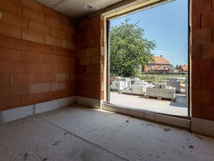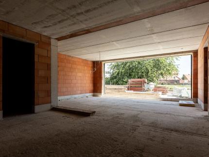 De woonruimte geeft via een groot schuifraam uit op de tuin (45m˛) met ZEER GROOT terras achteraan. Ook een tuinberging is voorzien!