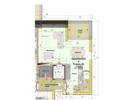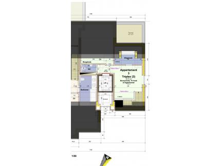 Appartement 4 (duplex) van 117 mē, 2de en 3de verdieping met 2 slaapkamers en terras.