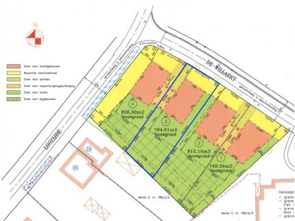 In de zijtuinstrook ter hoogte van lot 4 is een garage of carport toegelaten en achteraan is een zone voor bijgebouwen voorzien met een maximale oppervlakte van 75m˛.