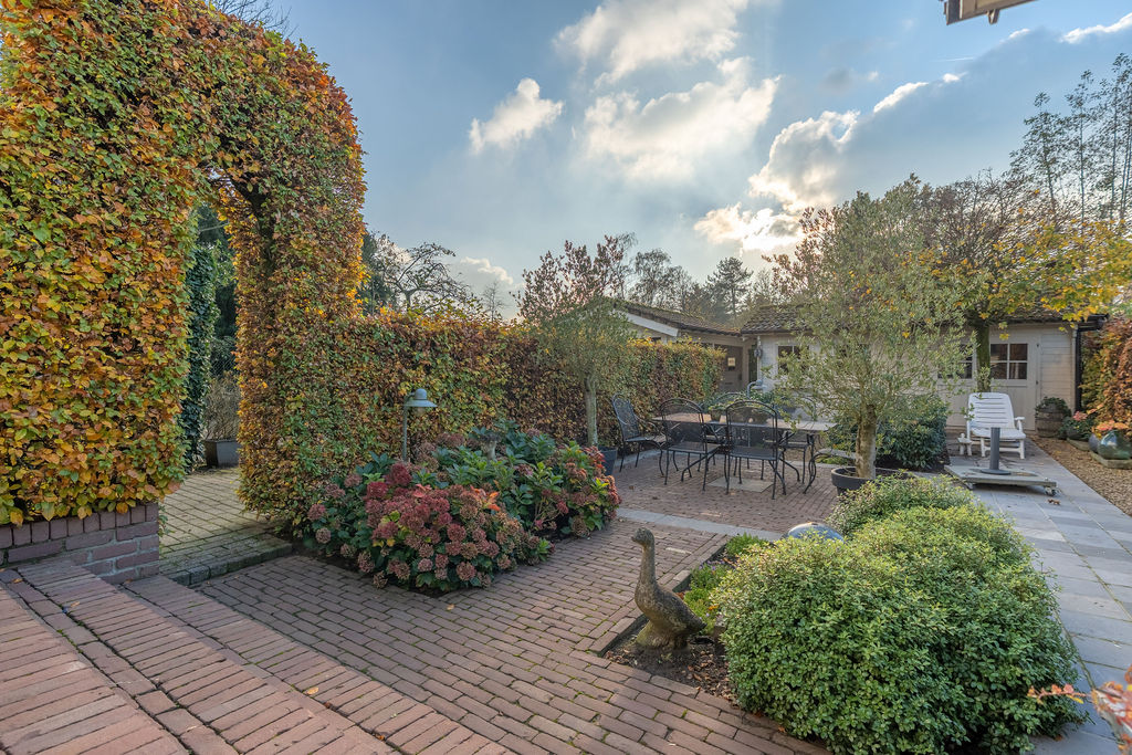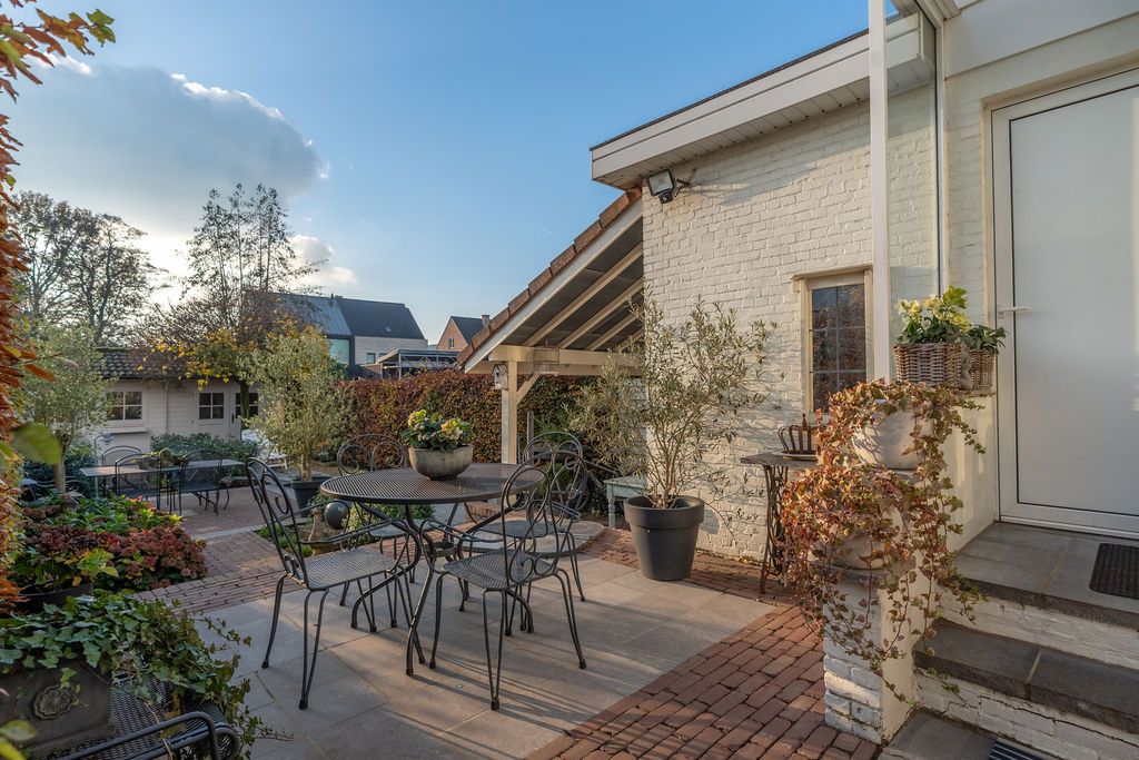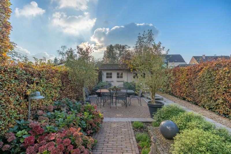 | Tuin | Achteraan is de tuin aangelegd met een terras ter hoogte van de woning, in de tuin achteraan staat een carport en tuinhuis, alsook een klein werkhuis. De woning kan naar rechts uitgebreid worden op de tuin rechts, wat potentieel interessant is om extra woonruimte, kantoor of praktijkruimte te creëren, de ideale mix van wonen en werken. |