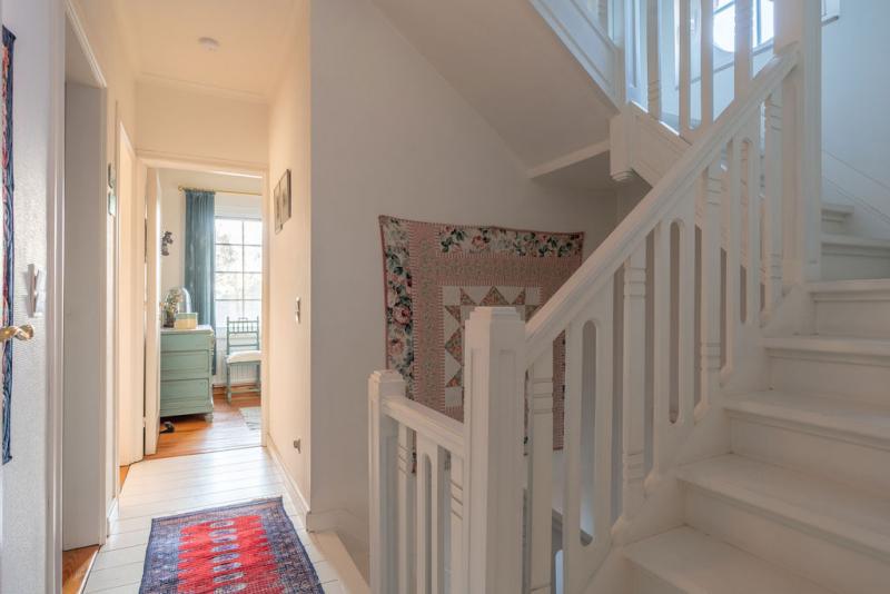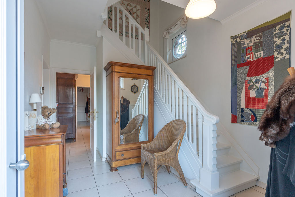 | Inkomhal | 13,20 mē | Ruime inkomhal met wit geschilderde houten trap naar de bovenverdieping. De inkomhal geeft uit op de woonkamer vooraan en de eetkamer achteraan. |
