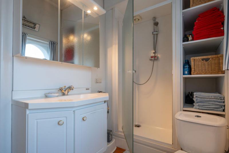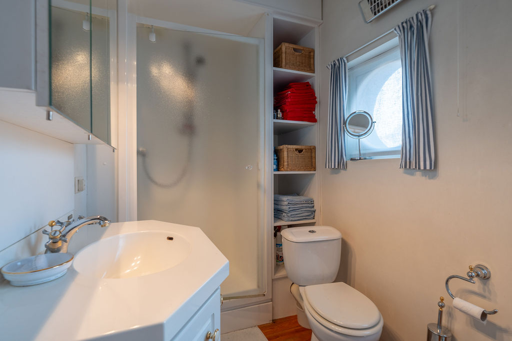 | Badkamer 1 | 6,00 mē | Knusse badkamer met lavabomeubel, douche, toilet en kastruimte. Houten planchet vloerbekleding. |