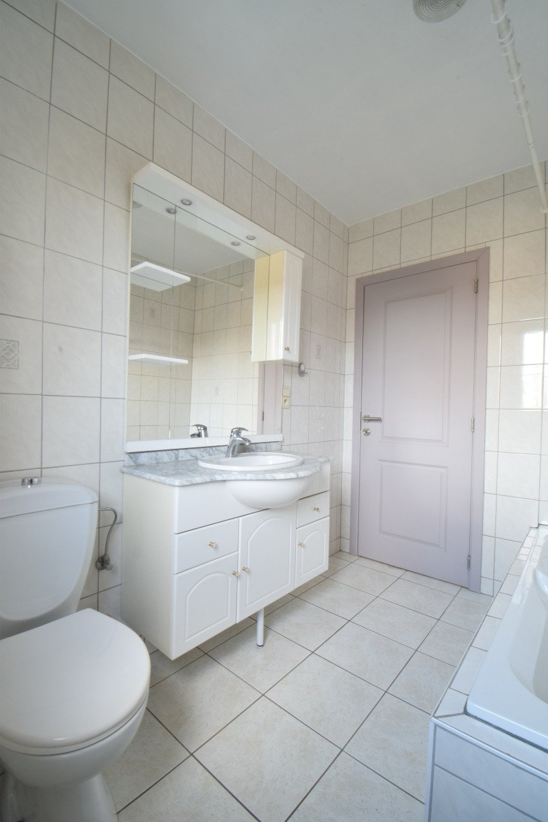 Het appartement bestaat uit een inkomhal die uitgeeft op de slaapkamer, een apart toilet en een mooie badkamer met lavabomeubel, ligbad met douchescherm en toilet.