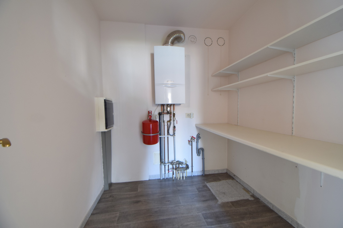 De nachthal met apart toilet geeft achteraan uit op 2 grote slaapkamers met veel lichtinval, een berging waar de cv-ketel op aardgas is geplaatst en een volledig ingerichte badkamer met douche, ligbad en dubbel lavabomeubel.