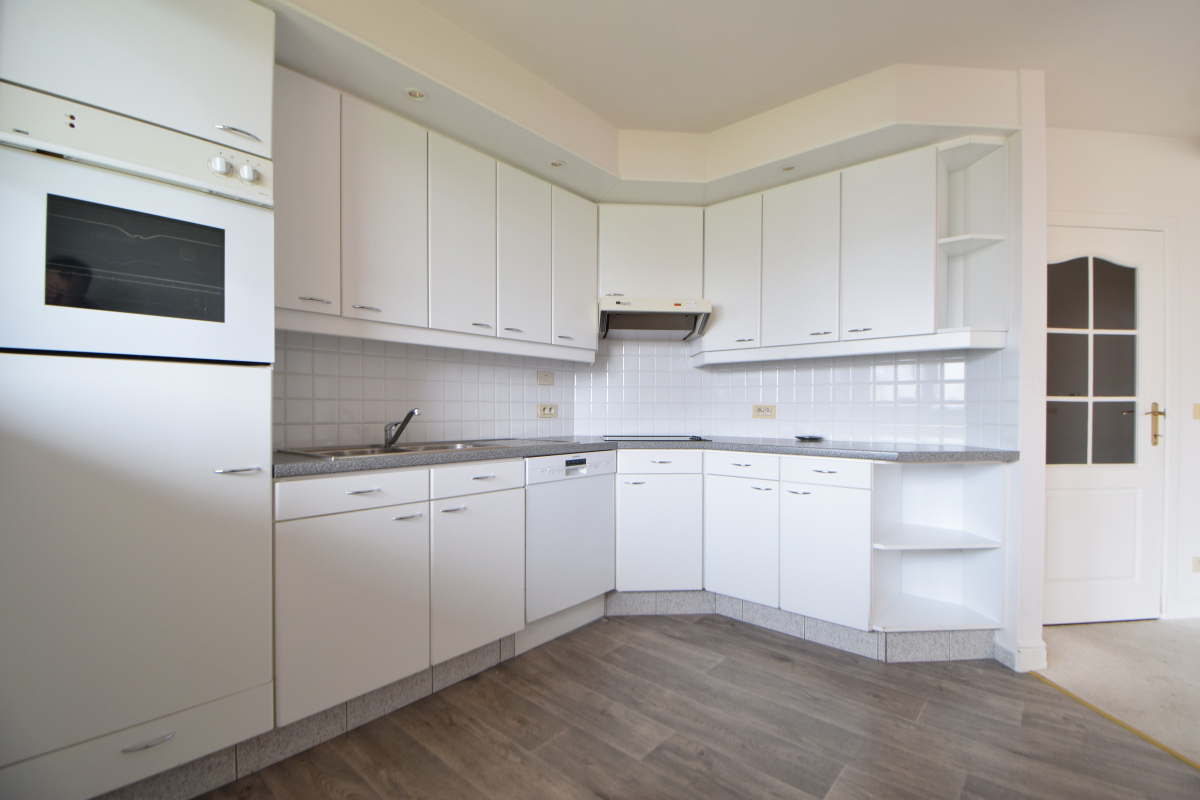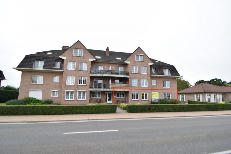 Ruim GELIJKVLOERS appartement met 2 slaapkamers in Residentie “Laagland” + berging en garage.Het gelijkvloers appartement bestaat uit een inkomhal die uitgeeft op een ruime leefruimte met veel lichtinval bestaande uit een zit- en eethoek en aanpalend een ingerichte keuken met pompsteen, dampkap, elektrisch fornuis, oven, inbouwijskast, voldoende kastruimte en plaats voor een inbouwvaatwasser.