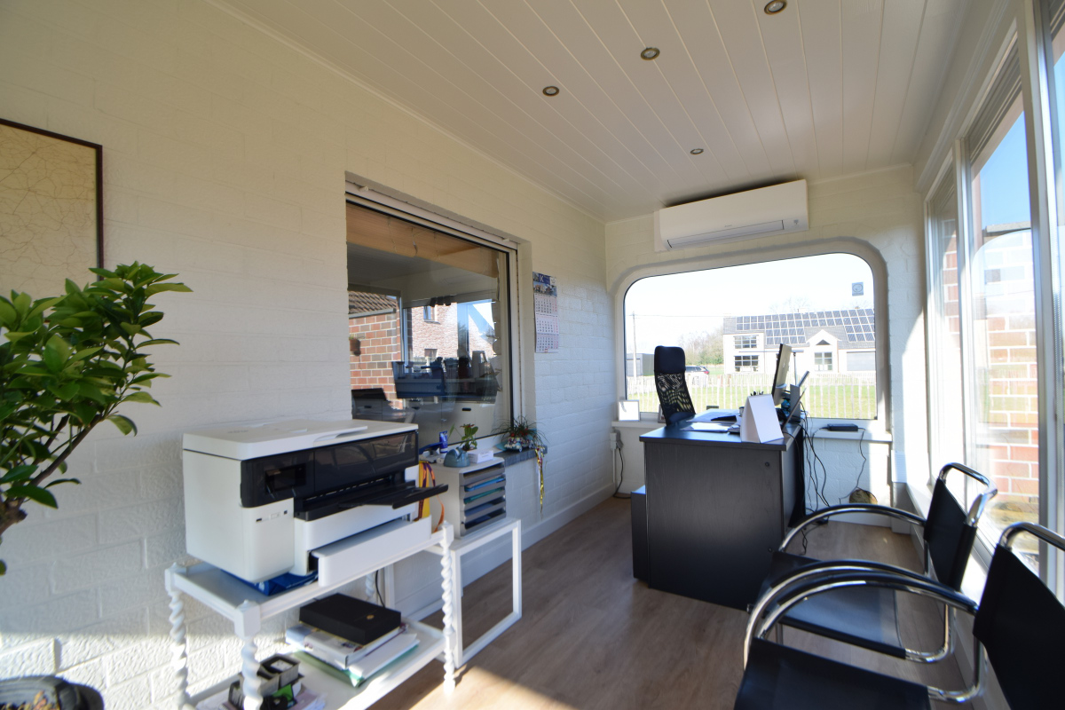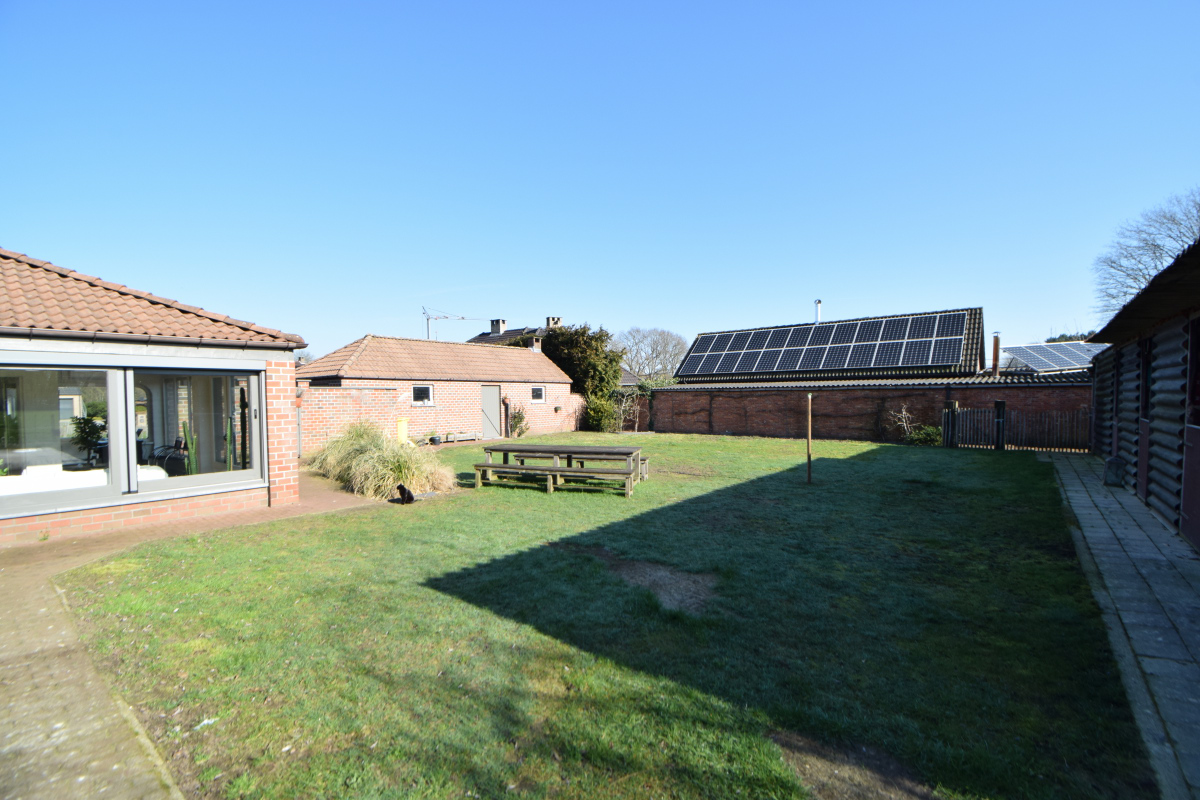 Verzorgde laagbouwwoning met 3 slaapkamer, tuin en grote garage.De woning bestaat uit een zomerkamer met zicht op de tuin die uitgeeft op de keuken met ontbijthoek, aanpalend is er een ruime leefruimte met knusse zithoek en mogelijkheid om een kachel te plaatsen. Verder is er een nachthal met apart toilet die uitgeeft op een badkamer met lavabomeubel en ligbad met douchescherm.
