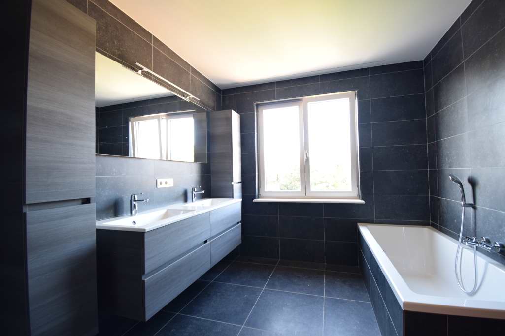 Op de eerste verdieping zijn er 3 ruime slaapkamers (2 slaapkamers en een master bedroom) met aanpalende luxe badkamer met ligbad, dubbele wasplaats, grote inloopdouche en dressing.