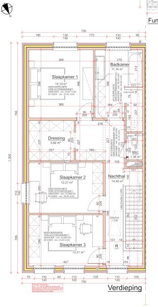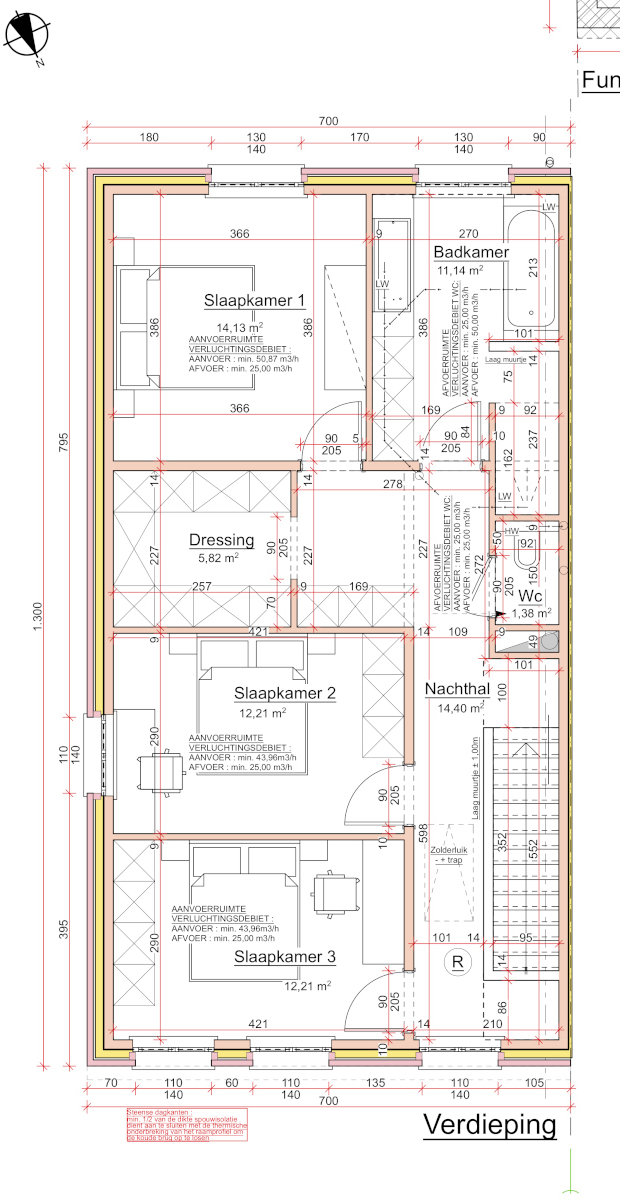 | Nachthal | 14.4 mē | Ruime nachthal met parket vloerbekleding, een apart toilet, de hal geeft uit op de verschillende slaapkamers, dressing en badkamer. |