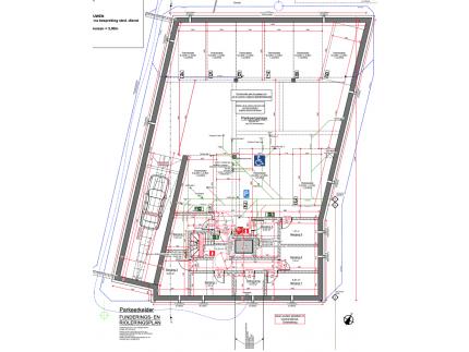 Ondergronds zijn er 9 autostaanplaatsen en 7 bergingen, bovengronds zijn er achteraan 2 autostaanplaatsen en vooraan een gemeenschappelijke fietsen- en vuilberging.