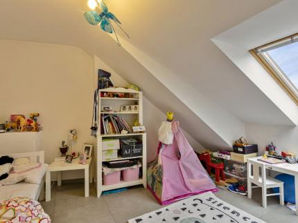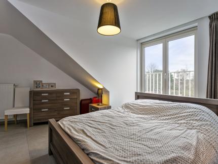 Onder dak zijn er 2 slaapkamers en een ruime badkamer met lavabo, toilet, ligbad en een grote inloopdouche.