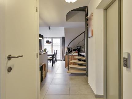 Het gebouw beschikt over een grote, rolstoelvriendelijke lift die rechtstreeks uitkomt in beide verdiepingen van de duplex (lift komt tot in de verdieping onder dak met slaapkamers).